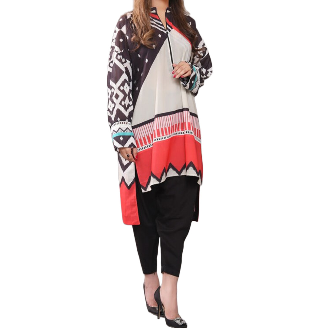 Want to own an exquisite, flared stitched dress for a festive occasion? Try out an art silk dress that’s accentuated with a striking Motif print. This dress made in silk fabric in motif print features flaired front and boat neckline. This article full length sleeves and flared hem. Length 50″. Model is wearing size S. Model height 5’5″.
