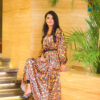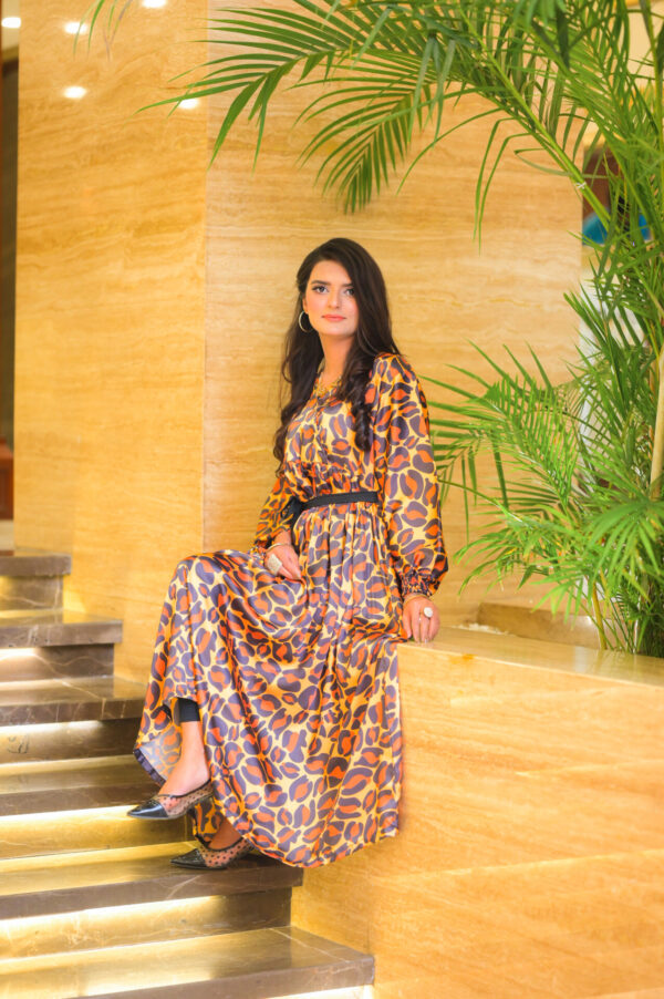 Digital Leopard Print on Silk Long maxi makes this dress outstanding. This maxi is highly comfortable and a perfect pick of the season. It arrives with detachable belt and vibrant colors. Smocking on sleeves and buttons at front make it carry friendly. Length 50″. Model is wearing Free Size. Model height 5’5″.